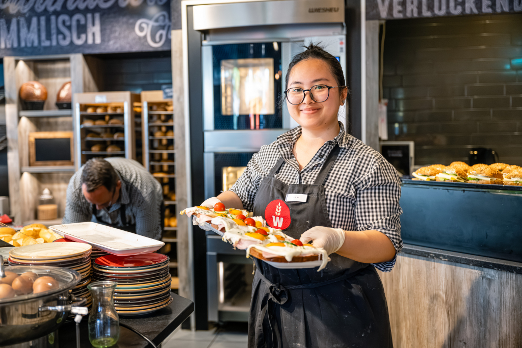 Wir arbeiten in unserer Zentrale in Dinklage in einer gläsernen Backstube. Aber auch in unserer Verwaltung und in unseren Fachgeschäften setzen wir auf Transparenz. Bei uns ist immer etwas los, unser Arbeitsalltag ist vielfältig und überraschend spannend. Aber schaut es euch selbst an:
