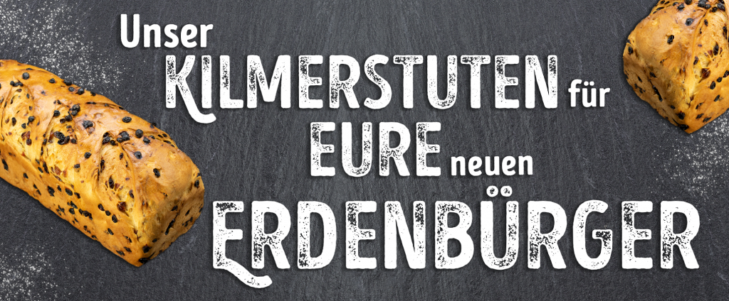 Wir backen für euch saftigen Stuten für die beliebte norddeutsche Tradition, um einen neuen Erdenbürger zu begrüßen. Erhältlich sind verschiedene Längen des Kilmerstuten mit Rosinen oder als Weggen ohne Rosinen.